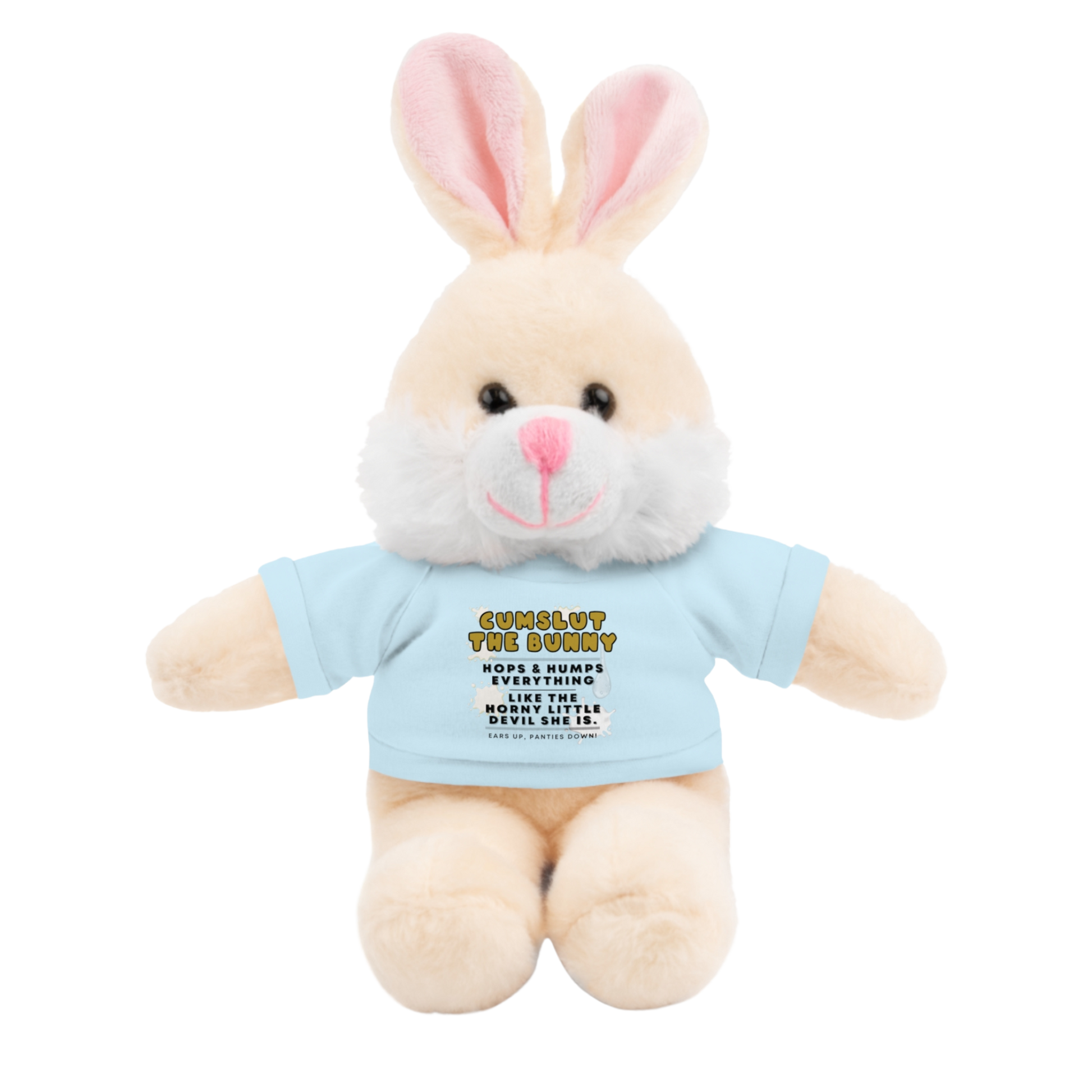 Meet Cumslut the Bunny - the NSFW plushie you didn’t know you needed. This filthy, inappropriate stuffed animal is part of our Filthy Feral Collection, designed for adults who love dirty humor and unapologetic chaos. Wearing a t-shirt that reads “Cumslut The Bunny. Hops and Humps Everything, Like The Horny Little Devil She Is. Ears Up, Pants Down!”, this bunny is equal parts hilarious and offensive.